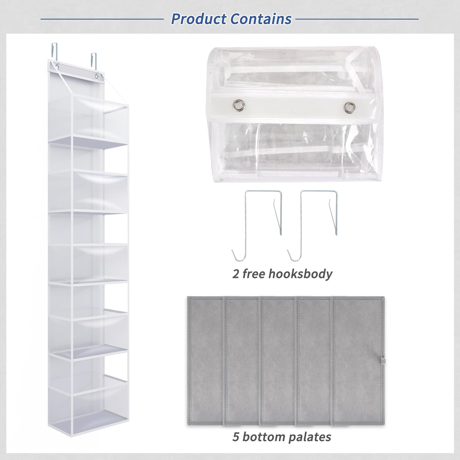 Fixwal 5-Shelf Over The Door Hanging Pantry Organizer, Room Organizer with Clear Plastic Pockets, 25lb Ultra Sturdy & Large Capacity for Closet, Bedroom, Nursery, Bathroom and Sundries