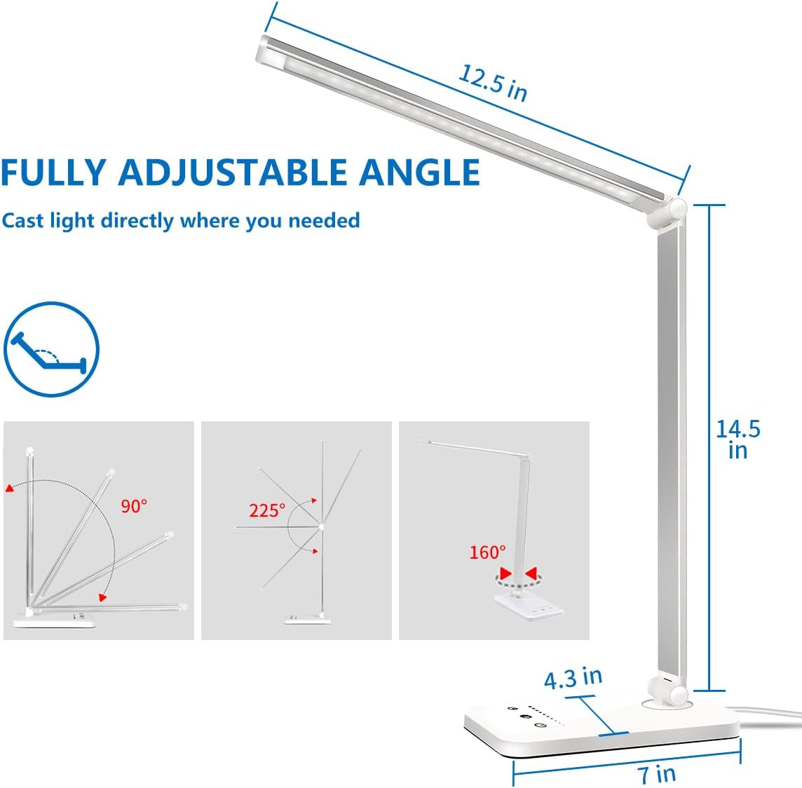 white crown LED Desk Lamp Dimmable Table Lamp Reading Lamp with USB Charging Port, 5 Lighting Modes, Sensitive Control, 30/60 Minutes Timer (White & Silver)